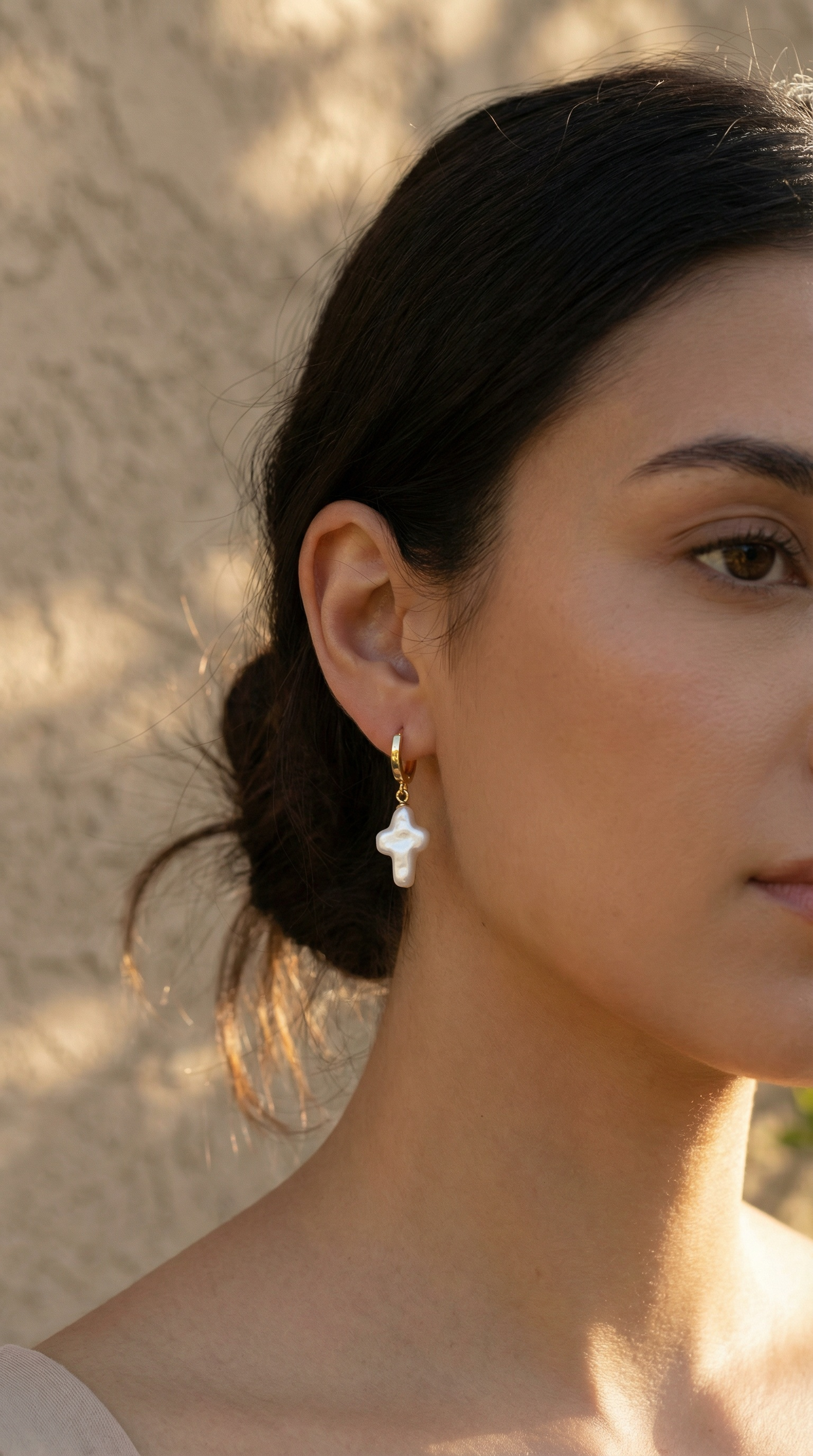 Pearl Cross Charm Hoops